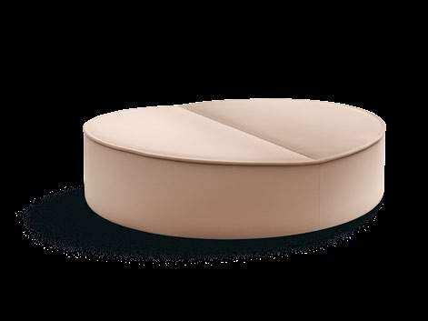 Conseta open base, 264 cm wide, with cylindrical feet, fabric 9192 stone white; Nenou pouf, fabric 9120 chestnut; Nenou tray, S03 Serpentinit Tauern; Sting coffee table, 80 x 80 cm, top S03 Serpentinit Tauern green, feet lacquered