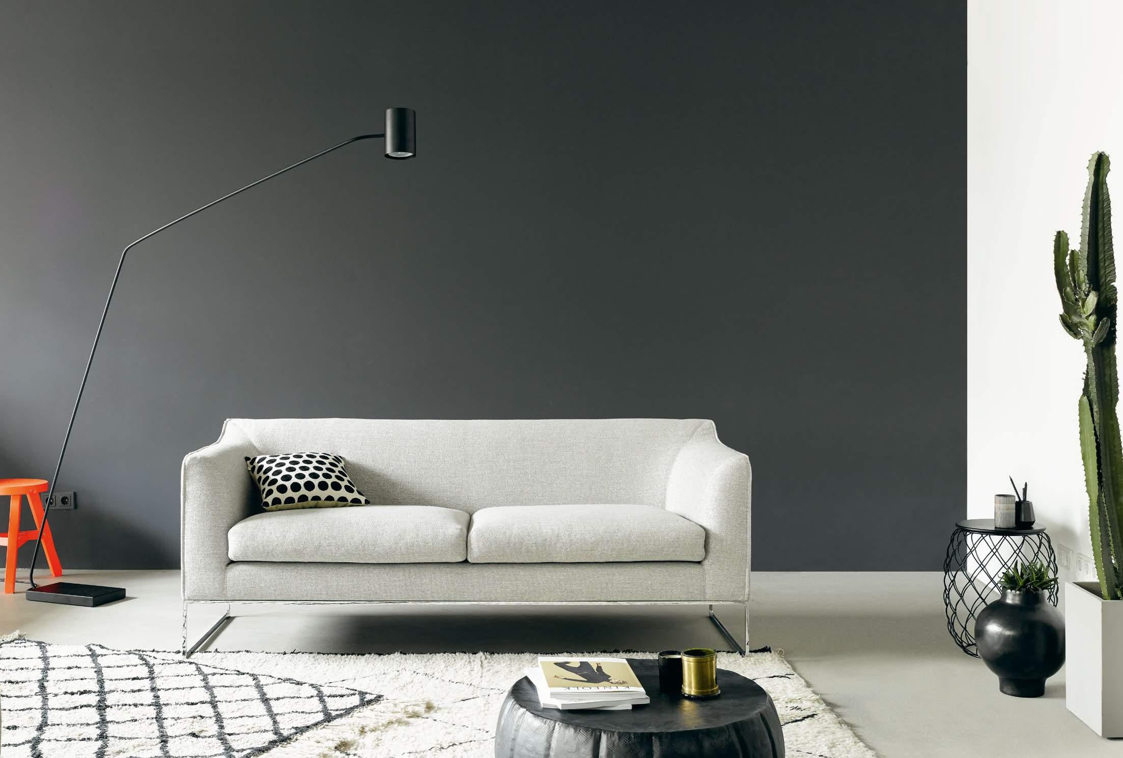 Conseta open base, sofa 204 cm, fabric 5019 cement, metal skids chromed