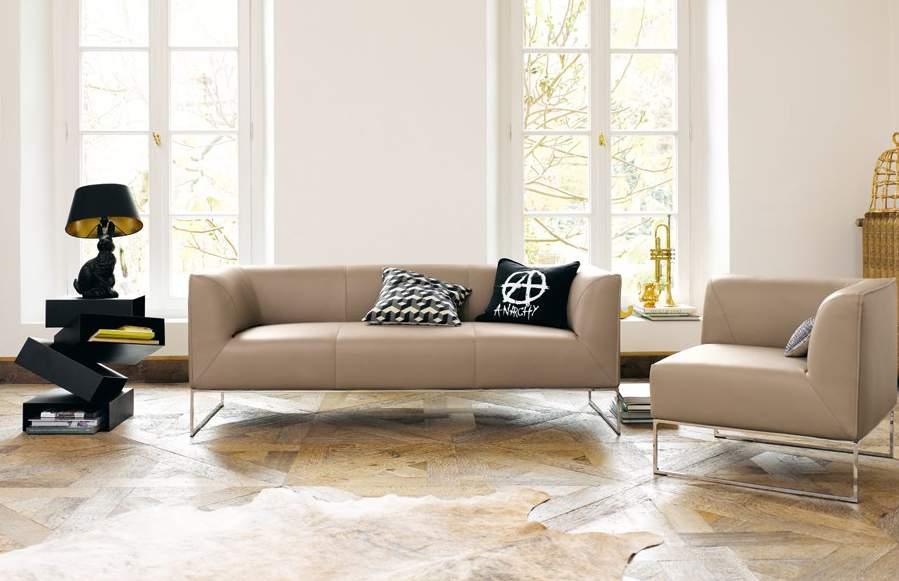 Conseta bodenfrei, Sofa 204 cm, Stoff 5019 zement, Metallkufen verchromt