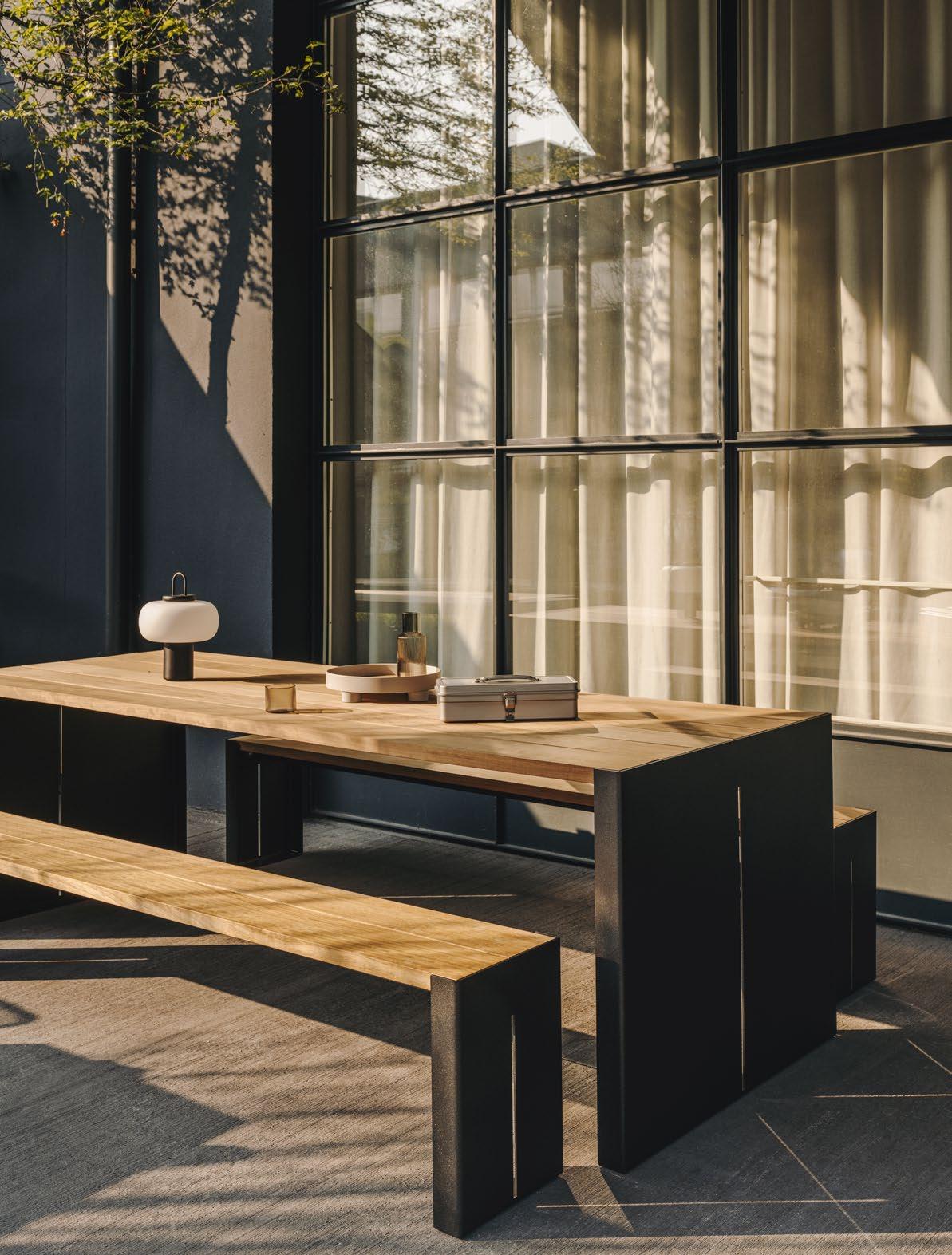 Uno spazio all’aperto apre la mente e il cuore. E moltiplica le occasioni di relax, di relazione o di lavoro. La linea PANCO per esterni raccoglie la convivialità popolare delle campagne italiane e la traduce in un linguaggio formale di serena, solida eleganza. Il piano d’appoggio del tavolo e la seduta della panca sono in legno di iroko, caldo e naturale al tatto. Le gambe in acciaio creano un piacevole contrasto materico e visivo, accentuato dal taglio laterale che aggiunge dinamismo. Il risultato è al tempo stesso classico e contemporaneo, per un tavolo che invita all’apertura e alla condivisione. Di cibo, di parole, di idee.