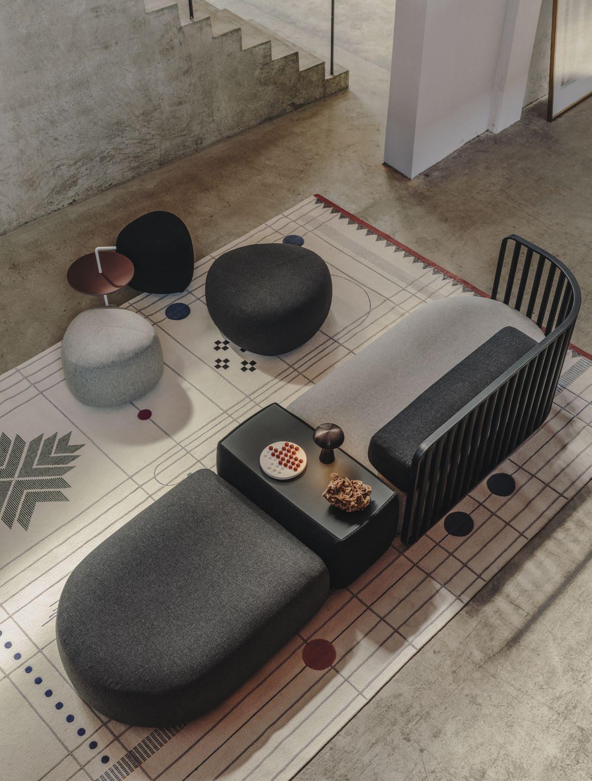 sofa, SCREEN space divider, KIPU pouf, JEY side table