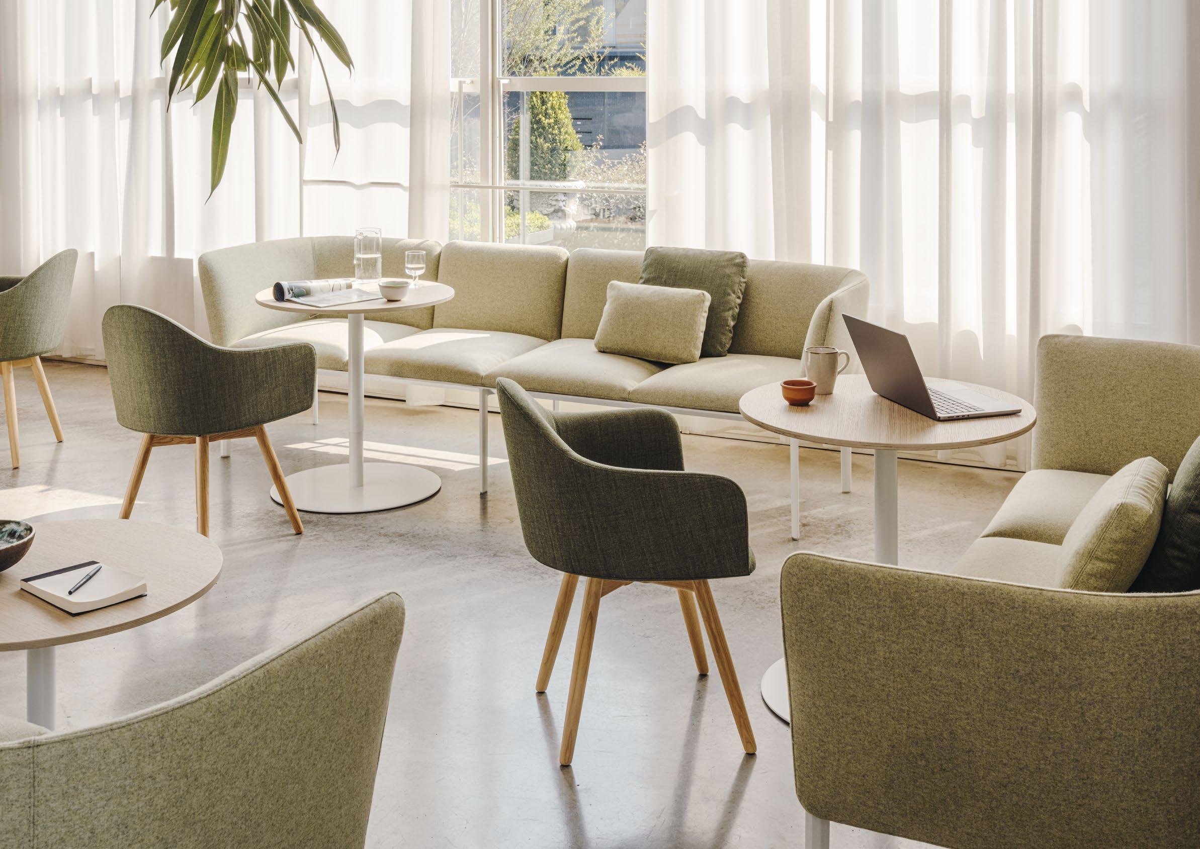 ADD SYSTEM office system, KAI stool, SEELA chair, PLUS sofa, KIPU pouf, JEY side table, OORT cushion