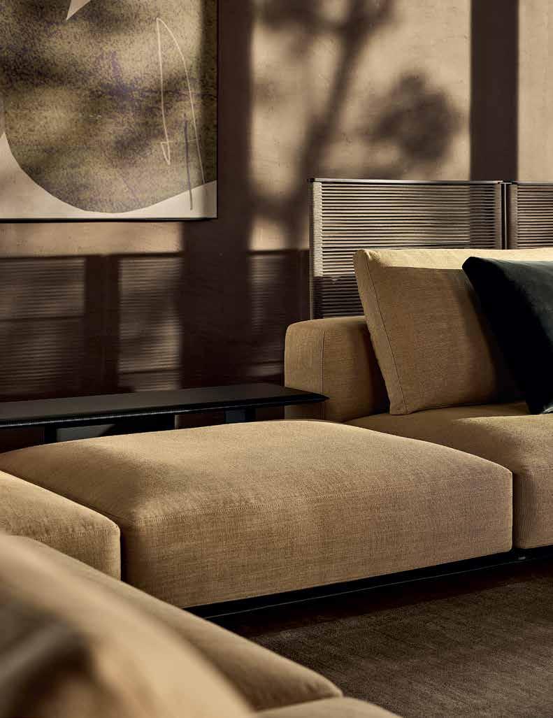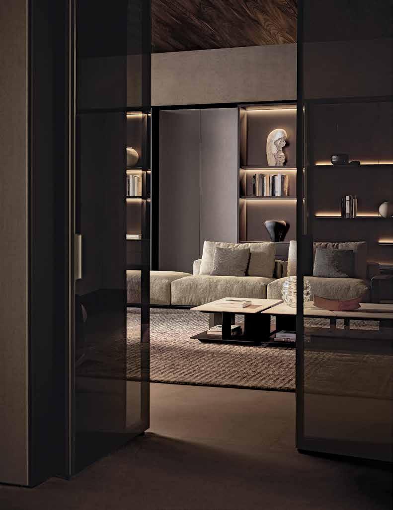 Poliform reserves the rights at all time to apply modifications for the functional or qualitative improvement of its products. Texts and drawings present in this brochure have a divulgative purpose: for every technical and dimensional aspect please refer to the company’s price lists and their relative updatings. The colour and material samples have an indicative value.