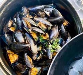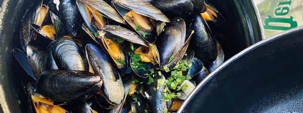 Uit eigen visserij; mosselen en Oosterscheldekreeft. Zeeuwse oesters, kokkels, etc.
