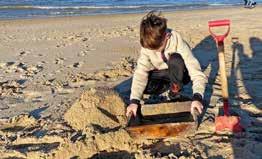 Wie kommt es also, dass gerade in ZeeuwsVlaanderen so viel an der Oberfläche gefunden wird? Der Strand wurde in den 1980er Jahren mit Sand von vor der Küste Zeelands aufgeschüttet. Auf diese Weise wurden die fossilen Schichten des Meeresbodens an den Strand verlagert. Da der Sand nun regelmäßig aufgefüllt wird und der Sand von anderen Orten stammt, ist es schwieriger geworden, schöne Muscheln und Zähne zu finden. Aber die starke Strömung des Meerwassers spült immer noch Fossilien frei. Vor allem nach einem Sturm aus Südwest bis Nordwest hat man eine gute Chance, sie zu finden, bei Ebbe zwischen der Gezeitenlinie und der Hochwasserlinie. Was man auch gelegentlich