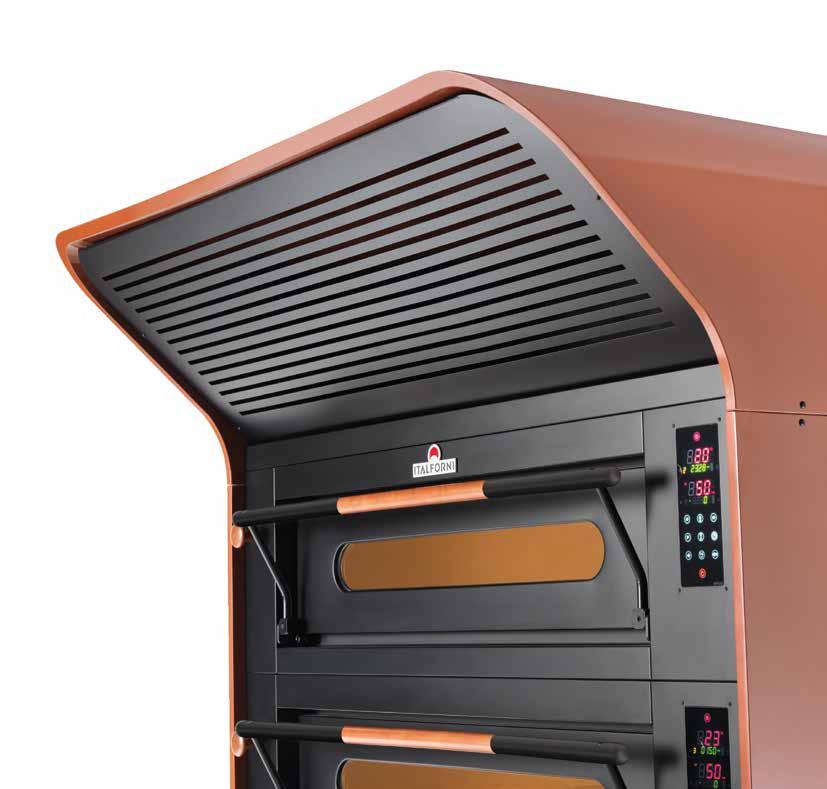 Il sistema brevettato Air Trap System garantisce un risparmio energetico del 30% e una perfetta omogeneità di cottura; la lama d’aria calda che scherma la bocca del forno evita la fuoriuscita del calore dalla camera di infornamento.