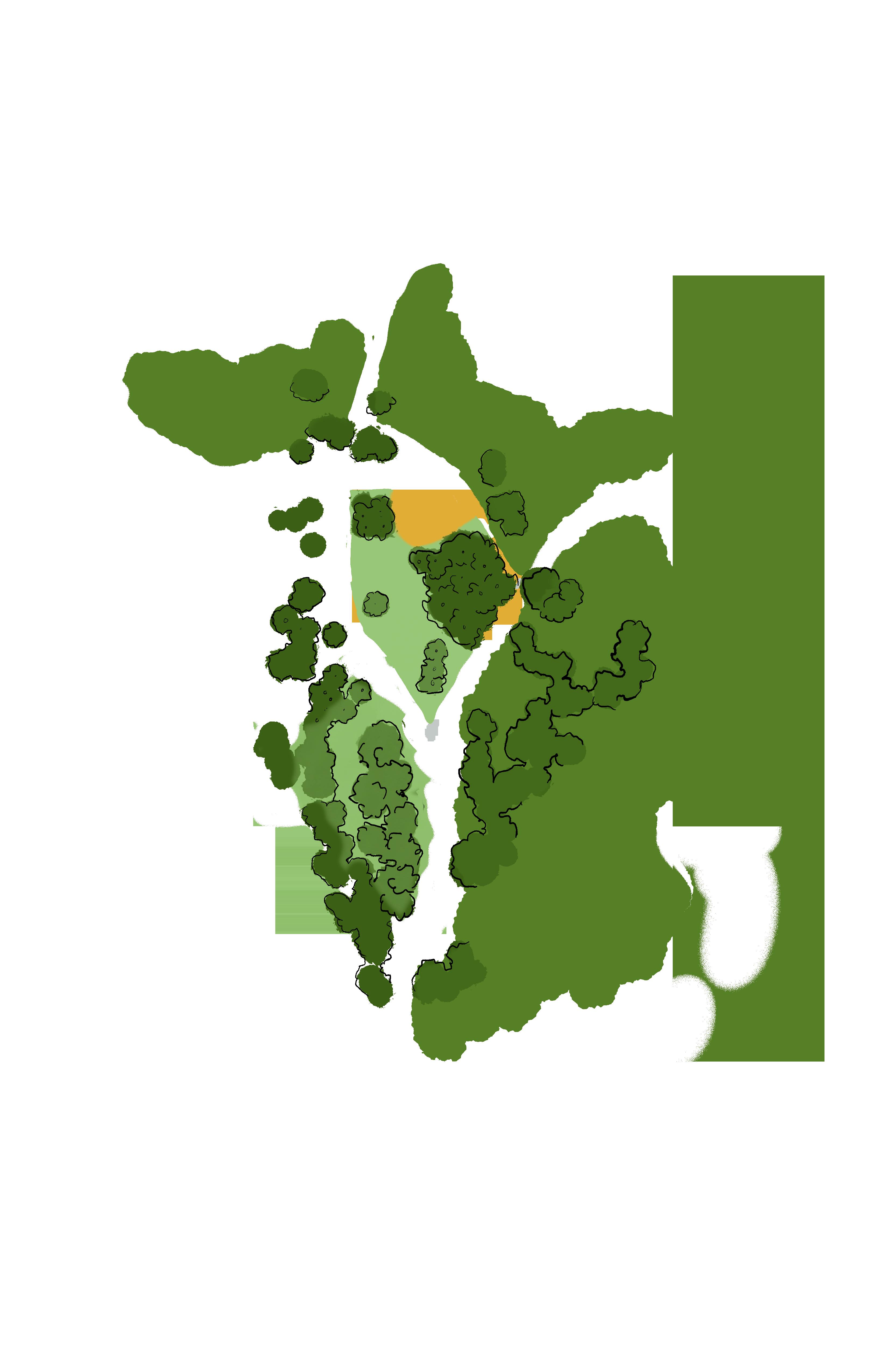 Minimal Footprint: This area is designed to maintain a contemplative atmosphere, with minimal development to encourage visitors to move through the old growth trees rather than congregate in a central location.