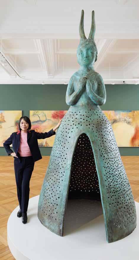 Leiko Ikemura with her sculpture Usagi Kannon, 2012/2019. Sculpture: Patinated bronze. From the exhibition at Heredium Art Museum, Daeieon, South Korea. The artist has a forthcoming solo show at the Kunsthalle Emden in Germany (November 23, 2024 -March 23, 2025)