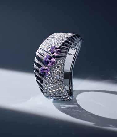 From the passion of tango to the austere precision of ballet and the exuberance of swing, the pieces express movement above all. Ceylon sapphires, rubellites, tourmalines and diamonds dance together in a