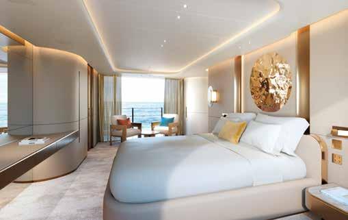 water play. An ideal yacht for living, working and having fun. The external lines incorporate a contemporary and modern style but without excess; curved, tense and soft lines alternate against the decisiveness of markedly straight lines, giving the design as a whole an elegant and timeless character. Thanks to its shallow draft, the Quaranta is ideal for sailing in the Bahamas and the Caribbean. Quaranta’s interiors are spacious and comfortable, with a layout that provides large living areas on all three decks. The style is dynamic yet elegant, defined by a calm colour palette and refined selection of materials. theitalianseagroup.com
