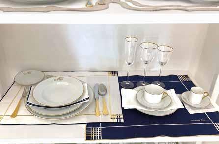 and platinum, with the possibility of customizations featuring logos or initials that reflect our collections. We had the pleasure of representing Made in Italy with the Piedmont region at the Italy Pavilion during Expo Dubai, a source of great satisfaction. On that occasion we were invited to breakfast at Zabeel Palace, the residence of the Sheikh—one of our esteemed clients—by some high-ranking officials. We travel the world, and these experiences also serve as sources of inspiration. The Buckingham Palace gates suggested a decorative motif, while the idea of pairing brown and orange came to me in Tokyo. When things are seen with love, they can be created with love. And that’s what our clients perceive, and it makes them happy.” maisonclaire.it
