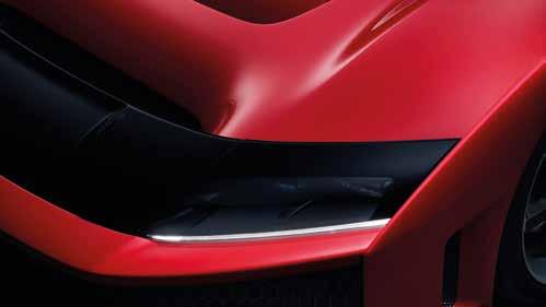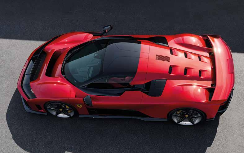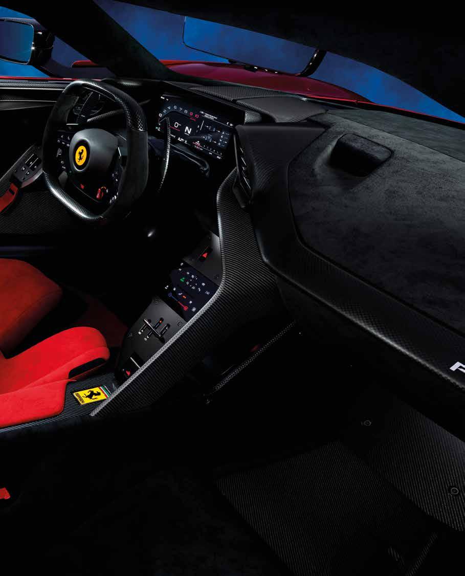 destined to become part of private collections, being transformed in this way from dynamic to static objects of admiration. As a result, talking about performance may not be appropriate for cars of this calibre. Reeling off impressive figures like the total of 1,200 hp put out by its four engines (a 3-litre V6 and three electric units, two at the front and one at the back), acceleration of 0-100 in 2.15 seconds, top speed of 350 km/h, self-limited, adds nothing significant to a supercar like the Ferrari F80, because it’s taken for granted that a Ferrari reaches peaks of performance, especially if