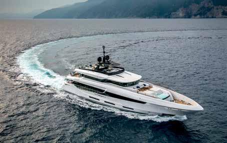 REV, one radical design choice was to concentrate all the 499 GT volume on two decks – an unconventional configuration for a sports yacht, but it has enabled the yard to create spaces that are more generous and comfortable than ever without losing out on speed – the Mangusta 165 REV can reach 35 knots with ease. As Arlunno says, “The numbers say it loud and clear – four yachts sold since the launch in 2022, confirming that if you design ample spaces, operational efficiency and an authentic spirit the sports yacht remains an iconic choice for anyone seeking uniqueness and prestige. This success is echoed by the “little sister”, the Mangusta 104 REV, which has rapidly conquered the market with ten units sold in just a few years”. Mangusta is also looking to the future in terms of sustainability. All its yachts are compatible with ecological HVO fuels, and over the past ten years the
