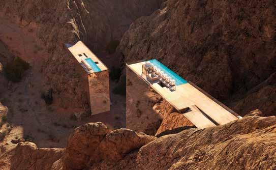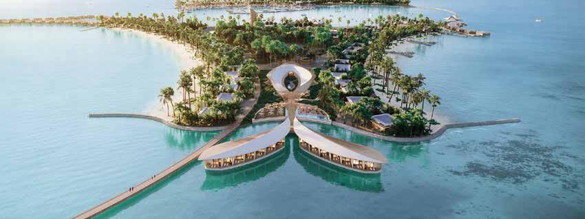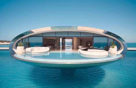 philosophically”, he says. The toroidal outline with Arabic calligraphy and the central void depict what humanity does not yet know. It’s interesting to see how for Killa, architecture is not only a job but also a means, an instrument of connection between humanity and the natural world. His designs consider local climates, use materials that narrate cultural stories and create spaces that invite reflection. “Architecture to me, is a vessel for progress.” Then there’s the aesthetic element. When looking at his designs we have to experience an emotion – and often, this emotion is surprise. The over water stainless steel orbs push the boundaries of design, minimising its environment footprint by canterlevering the