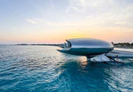 orbs above regenerative coral gardening within the protected lagoon. “Challenging the norm is not about novelty, it’s about meaning. Rather than asking “what should this look like?” we ask “what should this represent?”. Closely linked to the natural worlds, like the marine environment, he admits that he draws inspiration from many places – often from nature and sailing on the open sea. “I’d like to design a yacht that wouldn’t just be an object but a floating experience that would create a new benchmarks for superyachts.