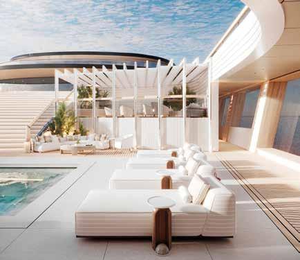 three hotel resorts offering ultra-premium rooms and top end suites, avantgarde retail establishments and a wealth of fine dining options. The island is particularly notable for its state-of-the-art marina, operated by industry leader IGY Marinas, which can accommodate 86 yachts up to 75 metres, with serviced buoys for superyachts up to 180 metres. The marina will serve as a vibrant social hub offering a full suite of services tailored to the specific needs of yacht owners and their guests.