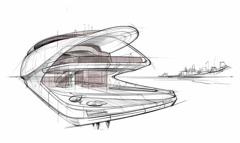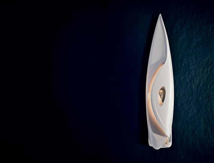 Lily is a 101-metre (331ft) yacht designed by Vripack for Oceanco. Its asymmetrical, split-level design optimises sight lines, air flow and owner experience. “The key requirement from Oceanco was to conceive a yacht for the change makers who wants to leave a mark,” says Vripack’s co-creative director, Marnix Hoekstra. The premise of the design is inspired by a water lily - a flower that emerges from the water and symbolises resurrection and purity. Viewing the yacht from aft reveals an exterior that wraps around like the curving leaves of a protective cocoon. An asymmetrical bow features a unique walkway starboard side and a helicopter landing pad portside. The elegant steel hull and aluminium superstructure mimics the shape of a sailing yacht with uninterrupted lines. The omission of side walkways and terraces gives the outward appearance of a smooth impenetrable surface, yet one-way glass windows that flank the profile maintain guests’ uninterrupted relationship with the ocean from within. The top deck is dedicated to the 450msq (4840ftsq) owner’s split-level quarters. It’s complemented by a vast 315msq (3390sq) private sundeck terrace. vripack.com