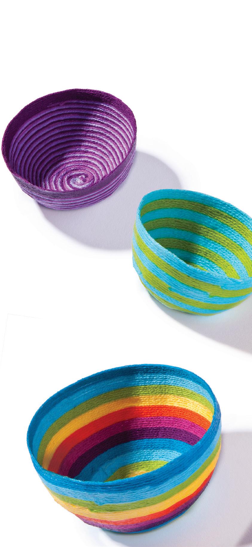 3 Bowl Forms in 3 Sizes, 3 Adhesive Sheets, 1 Ounce of Water-Based Glue, 34.5 Yards (31.5 M) of Cotton Thread, Instructions.