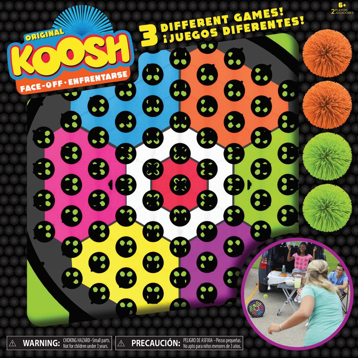 #23322 • 2–8 Players • Ages 6+ Includes Face-Off Target, (4) 2-inch Koosh Balls, Target Face, Instructions. Size: 15” x 15” x2.5” • Case Pack: 4