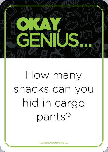 C HOLEY MOLEY NEW #23127 • 2–8 Players • Ages 6+ Includes 52 Cards, Die, Instructions. Size: 3.25” x 5” x 1.25” • Case Pack: 6 Available Fall 2023 • Try to guess what’s on your card in this hilarious game! • A “hole” lot of fun!