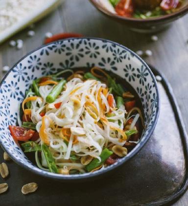 2. Thêm đậu phộng và phục vụ lạnh trên một luống rau diếp cắt nhỏ, nếu muốn.
