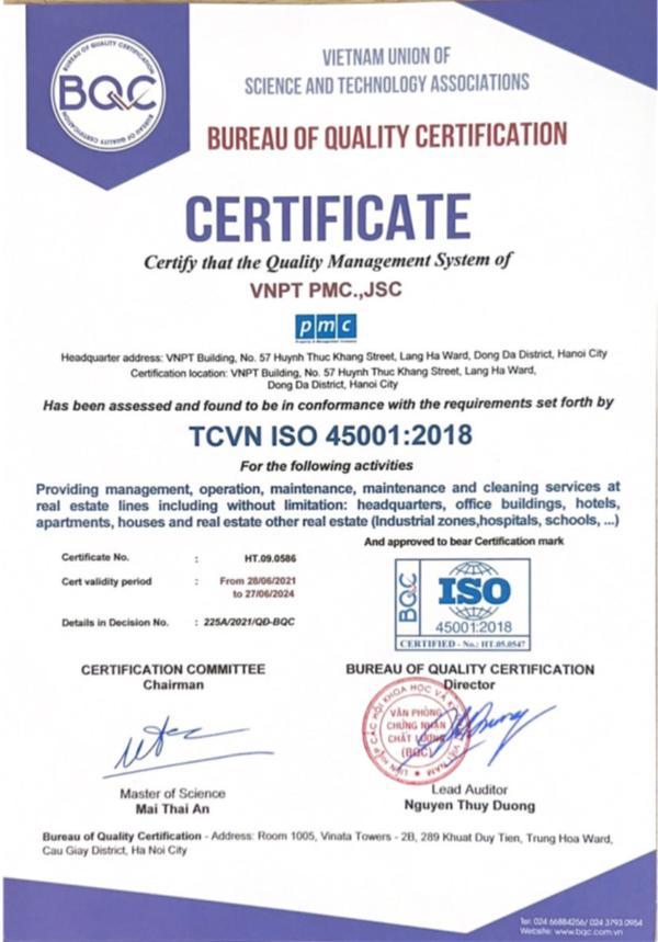 VNPT PMC.,JSCの品質管理システムが認 定されています。