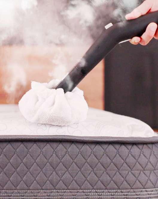 được làm sạch khoảng 2.5 - 3.8 cm. Nếu đầu phun quá xa, hơi nước có thể không đủ nóng để giết rệp giường hoặc trứng. Nếu đầu phun quá gần, rệp có thể bị thổi xuống sàn và hơi ẩm dư thừa có thể được bơm vào vật liệu được điều trị, dẫn đến các vấn đề khác (ví dụ, tạo điều kiện cho sự sống sót và tăng trưởng