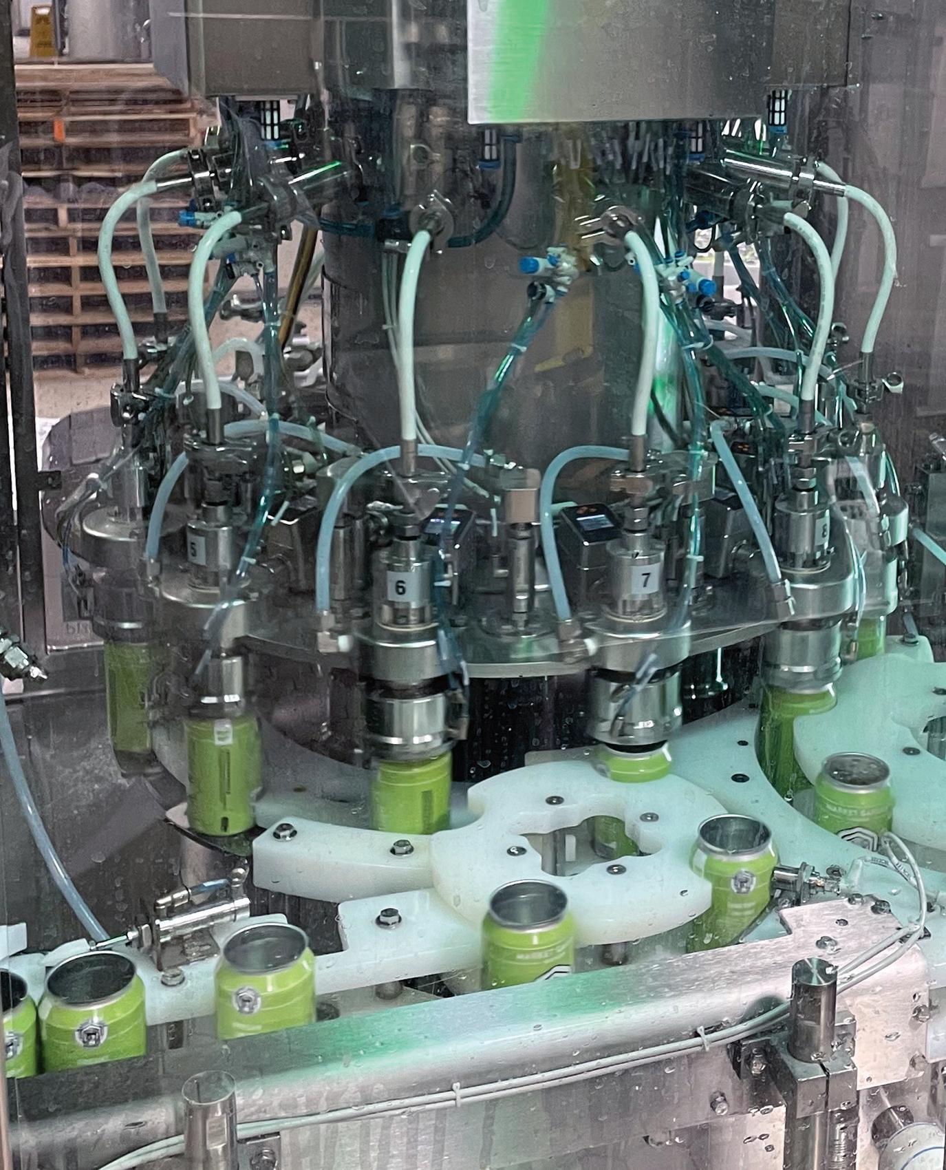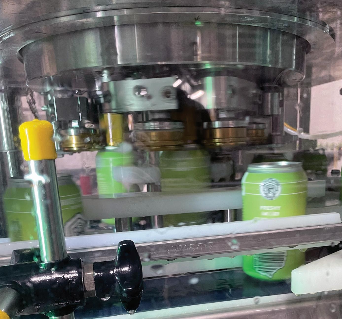 “It’ll start ramping up and adjust itself, which is kind of cool,” Tveekrem says. “Also, it features what they call under-turret gassing, pushing inert gas through slots just at the point of the lid being indexed onto the can. A lot of lines will have an actual tunnel where the cans are coming through and they’re flooding that whole tunnel with gas. This is doing it right there at the point of the lid going on. That system is integrated into the CIP, so when we’re doing our cleaning cycle, that’s where cleaning solution can be introduced through those ports. We’re kind of crazy about CIP around here, which I think PSA likes about us. We can anticipate some cleaning issues other breweries probably don’t.”