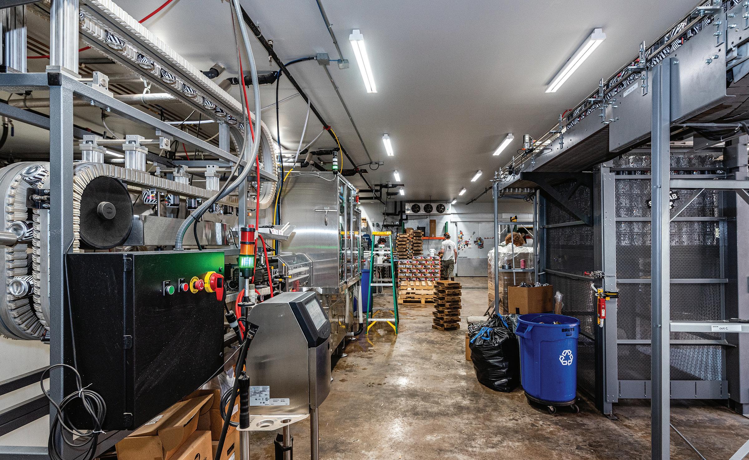 By August of 2023, with the front of the packaging line fully updated, PSA’s latest CB100R—a 12-head rotary filler and threehead rotary seamer—was ready for integration. Market Garden’s machine was the first CB100R to exit the loading docks at PSA, as he had agreed to be the beta-test guinea pig for his OEM neighbors to the south.