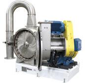 Coarse to ne grinding of friable powders, akes and granules into controlled particle sizes at high rates per HP/kW. High-speed rotation of the inner disc creates centrifugal force that accelerates bulk material entering the central inlet of the opposing stationary disc through ve intermeshing rows of pins. Desired tight particle size distribution obtained by controlling the rotor speed.
