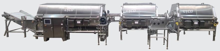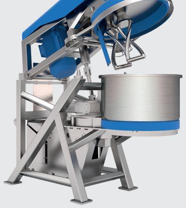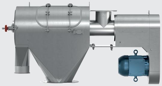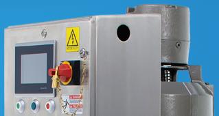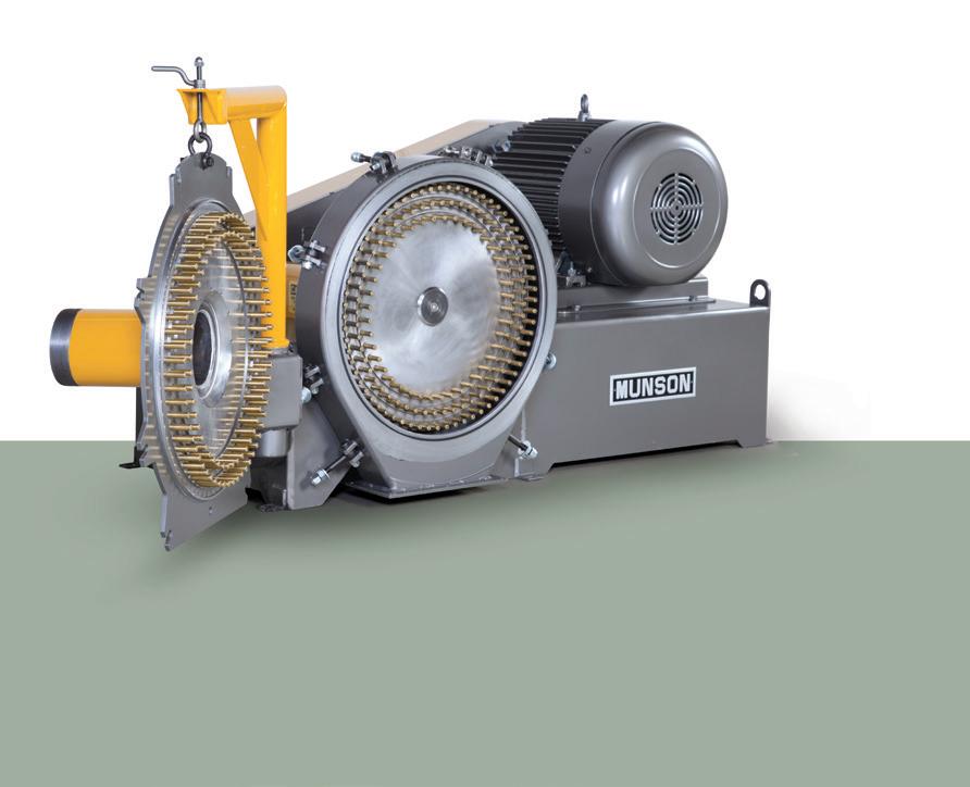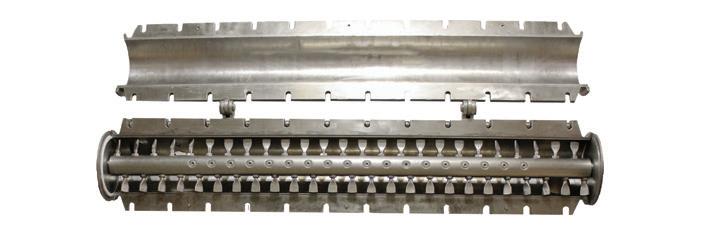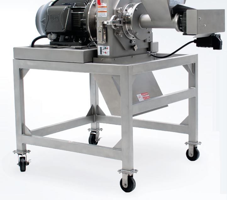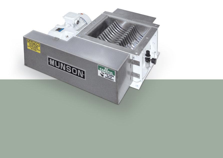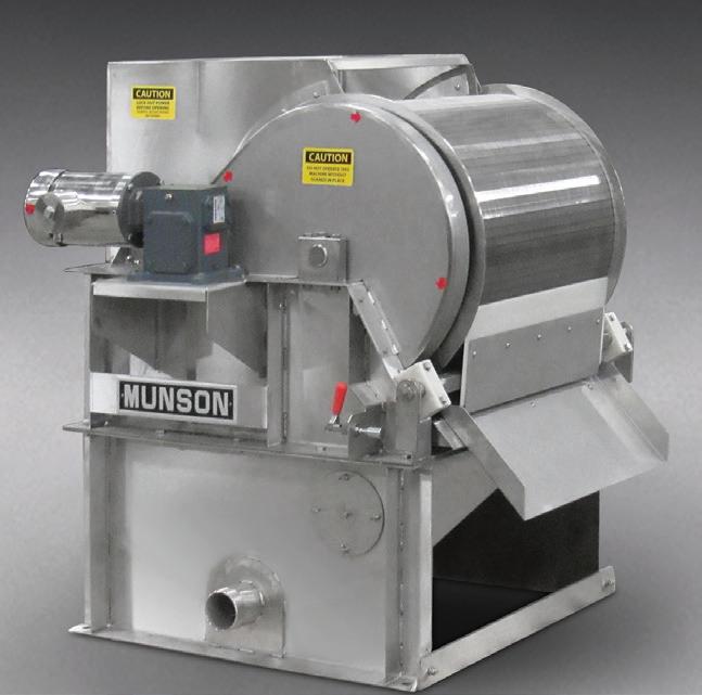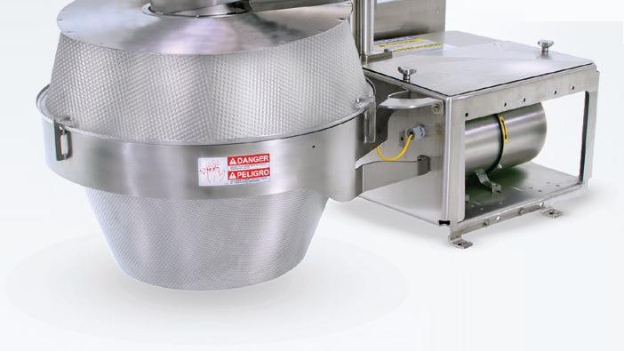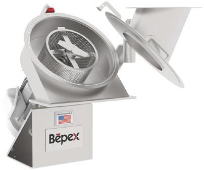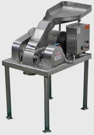 Remove lumps and agglomerates from bulk foods. Dual rotors with three-point, singlepiece breaking heads rotate with minimum clearance inside a curved, perforated bedscreen. On-size material exits through bedscreen apertures from 1/32 to 2–1/2 in. (0.8 to 63.5 mm) in diameter. Fits tight spaces between upstream and downstream process equipment.