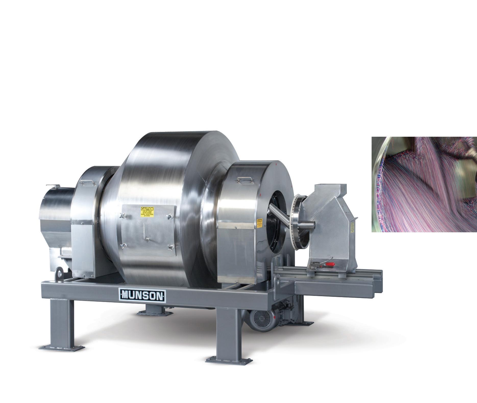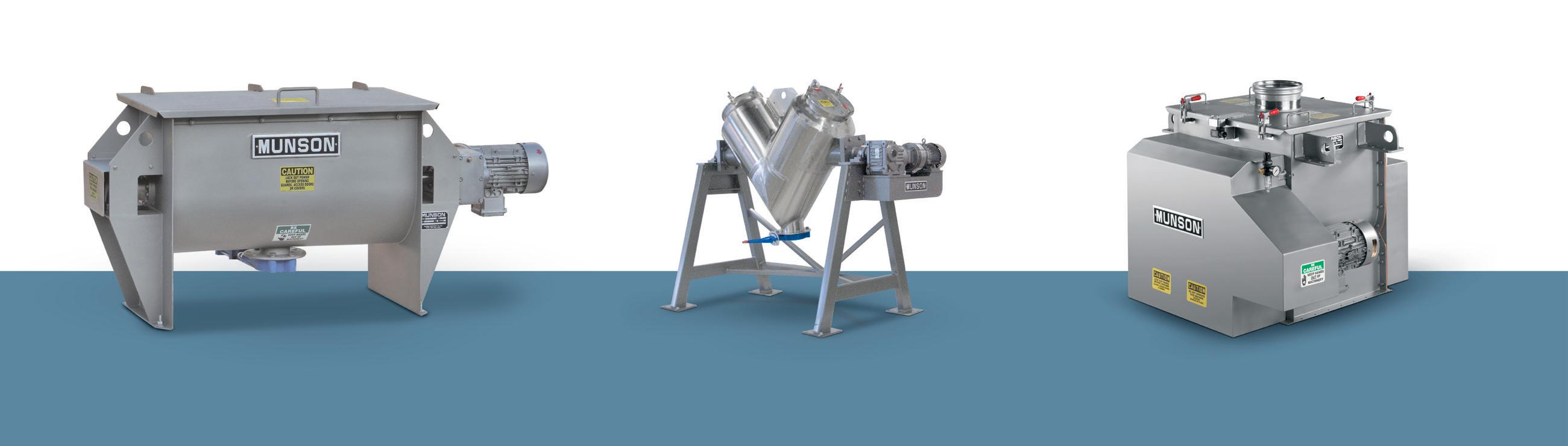 MUNSON® Fluidized Bed Mixers feature two shafts with paddles that counter-rotate at high speeds to fluidize material, achieving homogeneous blends in 10 seconds to 2 minutes. Low shear forces minimize friction with little or no degradation and insignificant heat generation. Drop-bottom gates provide rapid discharge. Capacities from 0.21 to 283 cu ft (6 L to 8 m3).