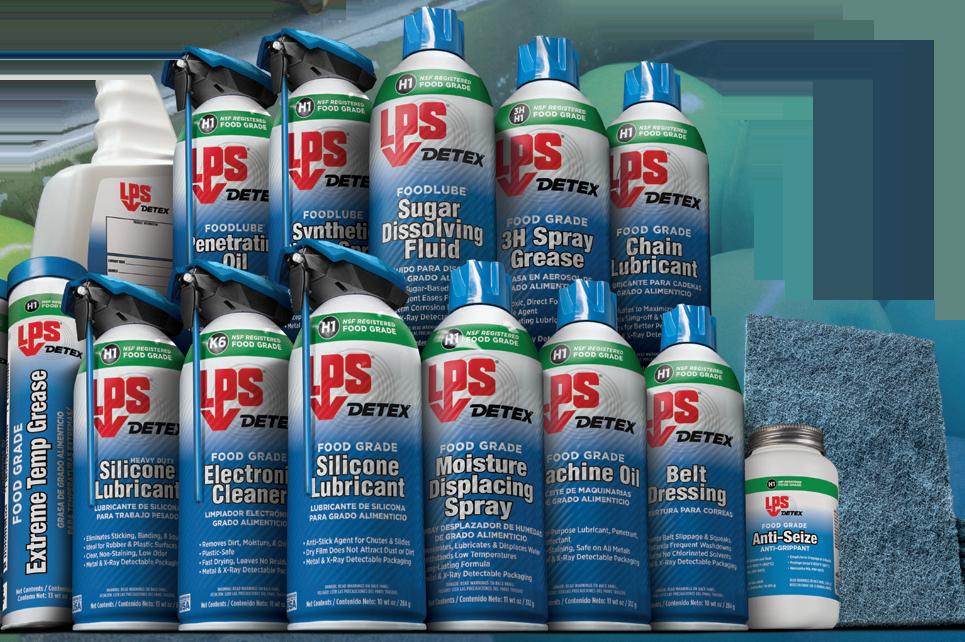 LPS® DETEX® - A full line of maintenance solutions specifically formulated for food processing facilities. These premium-performance chemicals save time and money by extending equipment life, reducing repair time, and lowering frequency of preventative maintenance all while food is in production. LPS® DETEX® plastic components are both metal & X-ray detectable to reduce the risk of foreign matter contamination.