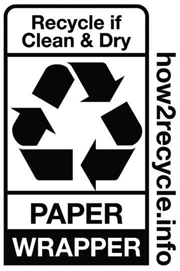 The repulpable paper used to flowwrap these bars is a curbside recyclable, How2Recycle prequalified paper type.