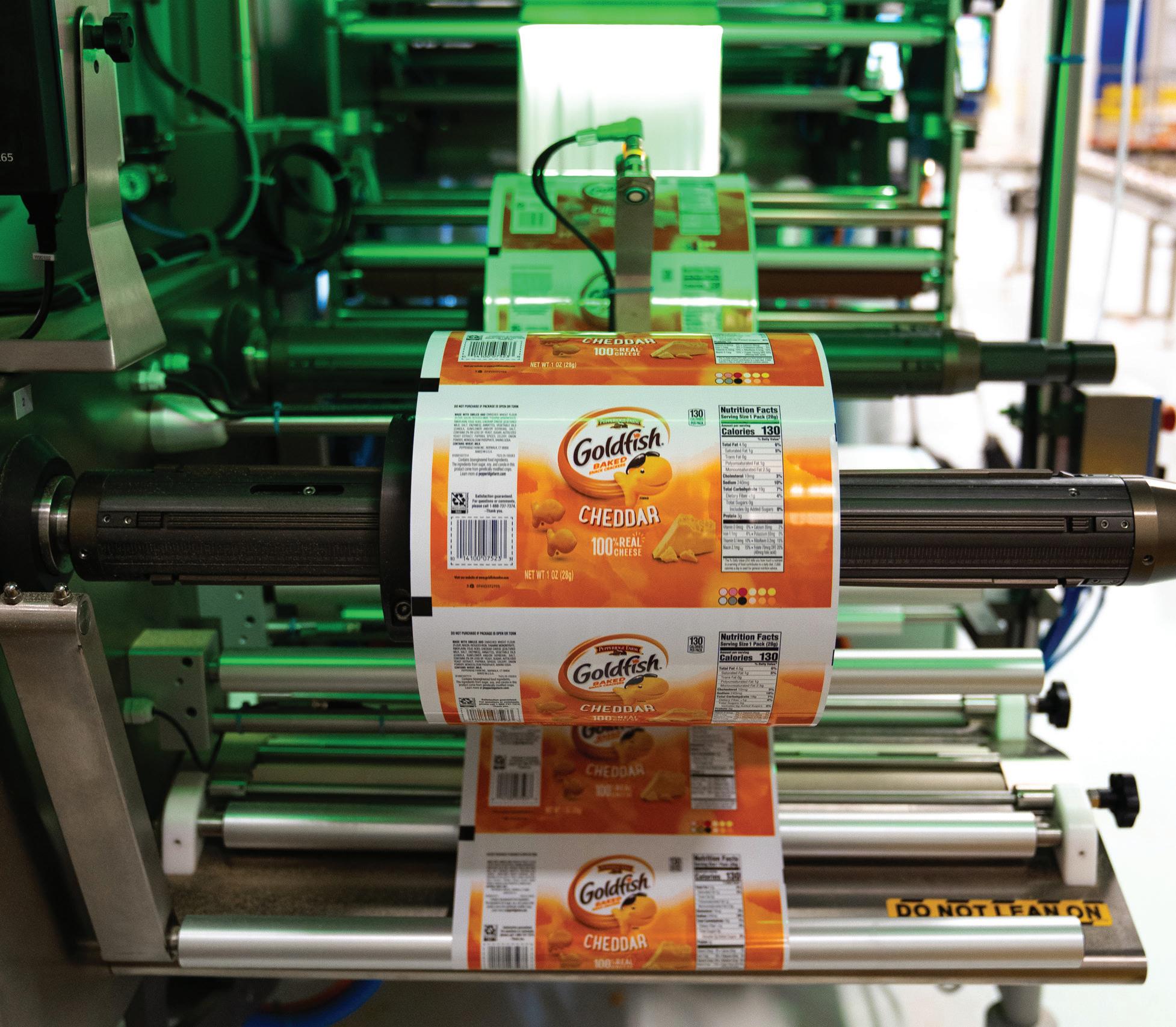 flow-wrapping equipment. Minor adjustments were made to the machinery to mitigate tearing when forming within the equipment.
