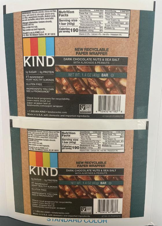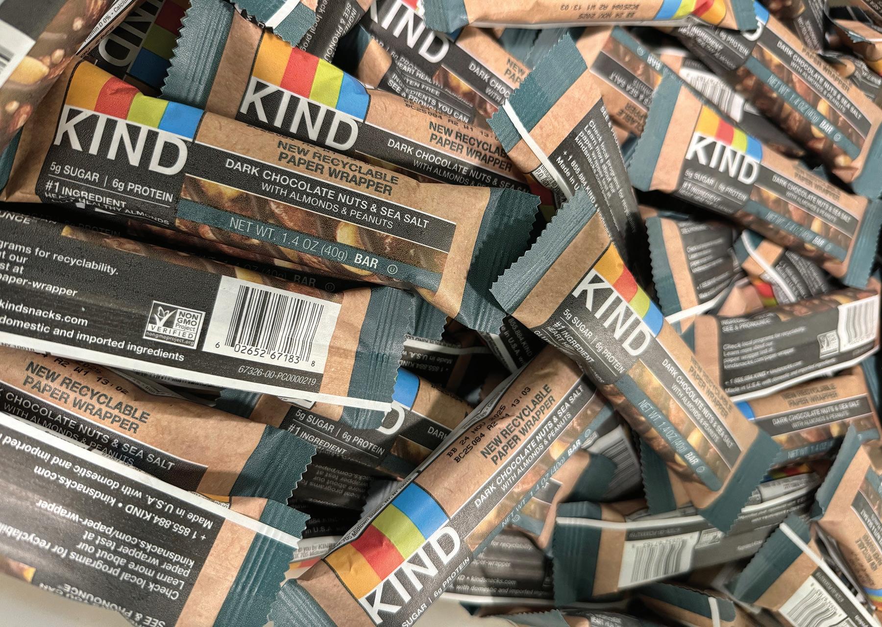 designed for recyclability by 2030. Printpack, Kind’s technical packaging partner, says that the pulpable paper used to flow-wrap these bars is a curbside recyclable, How2Recycle pre-qualified paper type. Stakeholders say that this packaging material will help make it possible for consumers to recycle.