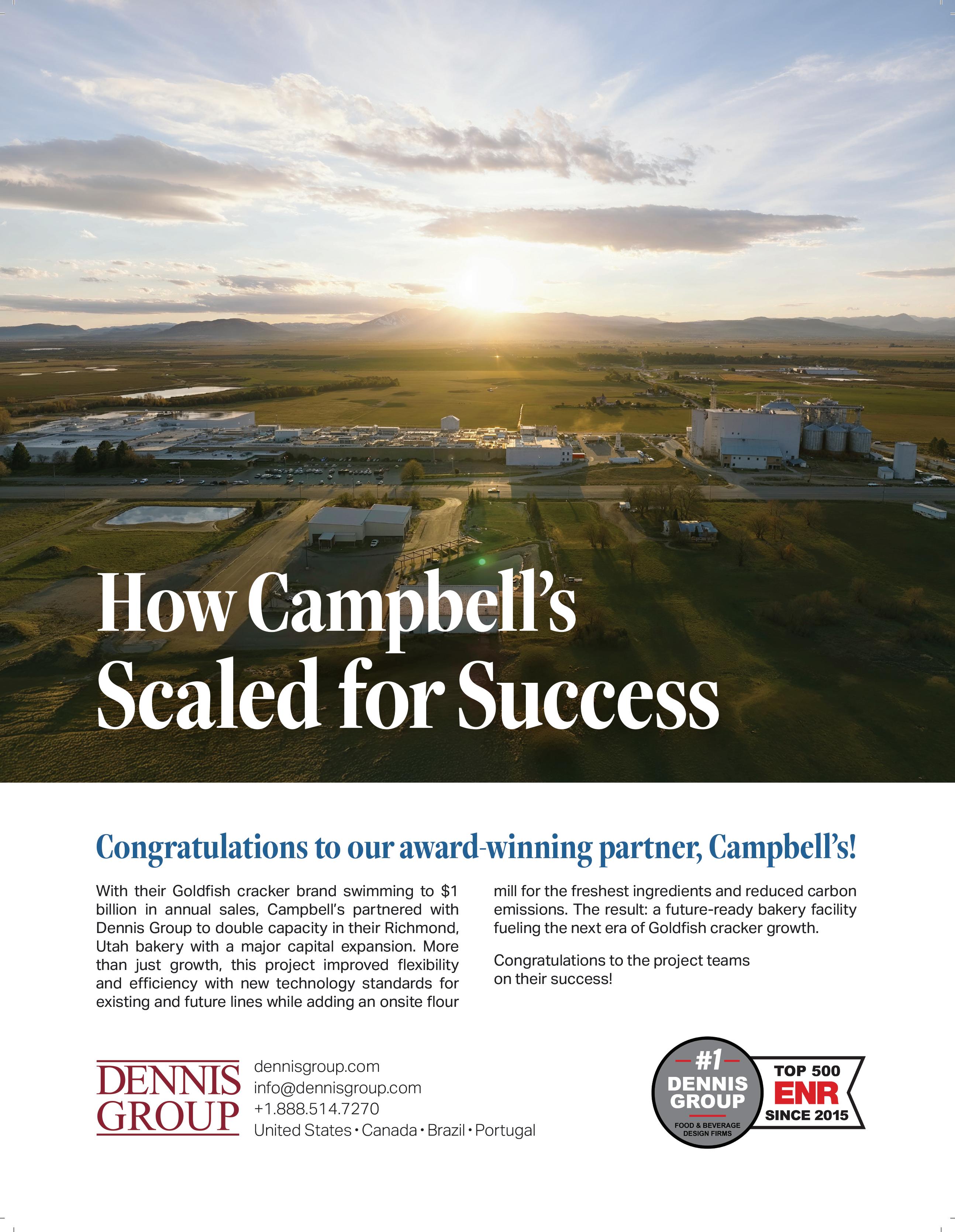 EVERY FOOD AND BEVERAGE manufacturing facility has a soul. Sometimes it’s a reflection of a company’s character or a reflection of the people who work there and the culture that’s been created. Figuring out what exactly it is that defines a facility can sometimes be a challenge, but not in the case of the Richmond, Utah, facility for The Campbell’s Company. How it has been able to improve throughput while saving money and still give back to the community shows how Campbell’s values were embedded in the design from the very start.