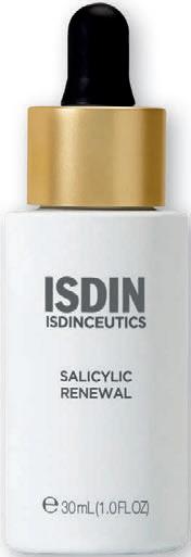 Un sérum corrector facial de doble acción: antiimperfecciones y antiedad indicado para pieles mixtas o grasas. Esta novedad con alta e cacia clínica y resultados visibles en poco tiempo viene a ampliar el portfolio de ISDIN de productos exfoliantes. Formulado con un 12% Acid Renewal Complex, una mezcla única de ingredientes renovadores de la piel que incluyen ácido salicílico y glicólico; e ingredientes antienvejecimiento como ácido hialurónico y ceratonia siliqua, Salicylic Renewal ha demostrado una reducción de imperfecciones en tan solo 2 semanas, mejorando de forma exponencial a las 4 semanas.