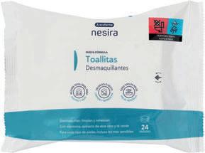 Toallitas desmaquillantes con una fórmula vegana y un 97% de ingredientes de origen natural. Aptas para todo tipo de pieles, incluso las más sensibles, pueden utilizarse en rostro, ojos y labios, dejando la piel limpia y fresca. Entre sus principales componentes destacan la alantoína, con propiedades humectantes y calmantes; la glicerina, un ingrediente con una alta capacidad de hidratación; y el extracto de aloe vera y de té verde, que poseen cualidades antioxidantes y calmantes. Además, se comercializan en un envase de 24 toallitas al que se le ha implementado un cierre con adhesivo que garantiza la frescura del producto a la vez que disminuye el plástico utilizado.