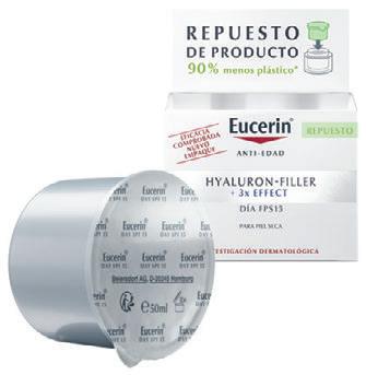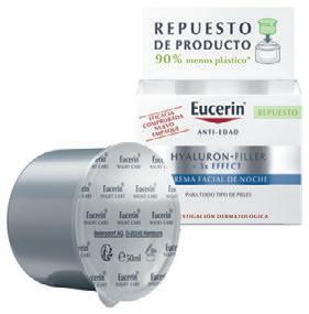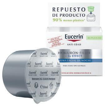 Las nuevas recargas de producto HyaluronFiller (Hyaluron-Re ller) triple efecto para las cremas de día y de noche permiten conservar el tarro original y recargarlo con un repuesto del producto hecho con un 91,7% de papel reciclado. De esta forma, una vez se termina la crema, puede rellenarse de nuevo adquiriendo las recargas de producto de Hyaluron-Filler, sin necesidad de volver a comprar el envase regular. La rma consolida su compromiso con la sostenibilidad y la innovación crean-