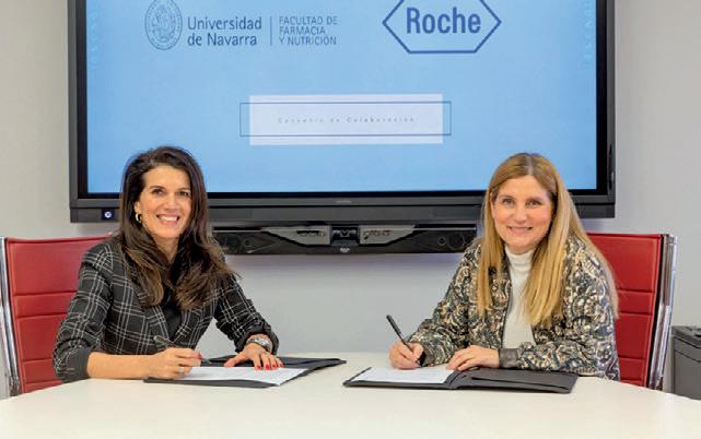 María Javier Ramírez, decana de la Facultad de Farmacia y Nutrición, y Rita Casas, directora regional de Roche en Navarra.