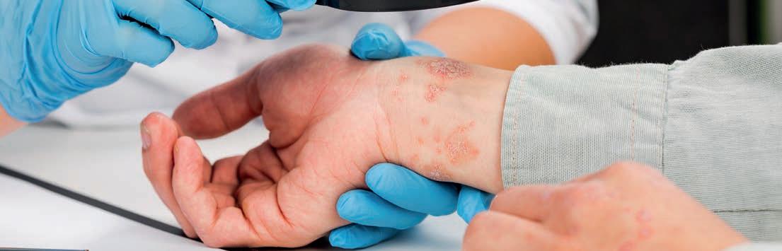 Los problemas de la PIEL son una de las principales preocupaciones no solo de los adolescentes, sino a cualquier edad. Lo cierto es que los dermatólogos son especialistas muy solicitados y las consultas sobre este tema, una de las más habituales en la farmacia. De ahí que, en Infarma, una de las propuestas del área de dermofarmacia sean las enfermedades dermatológicas emergentes y el papel del farmacéutico. Es el caso de la psoriasis, una enfermedad sistémica in amatoria de afectación cutánea, de la que nos habla una experta en este número, concretamente, de la actuación farmacéutica en el paciente con psoriasis. El cuidado dermatológico de indicación farmacéutica puede resultar un coadyuvante indispensable para estos pacientes y es fundamental como primer escalón del tratamiento.