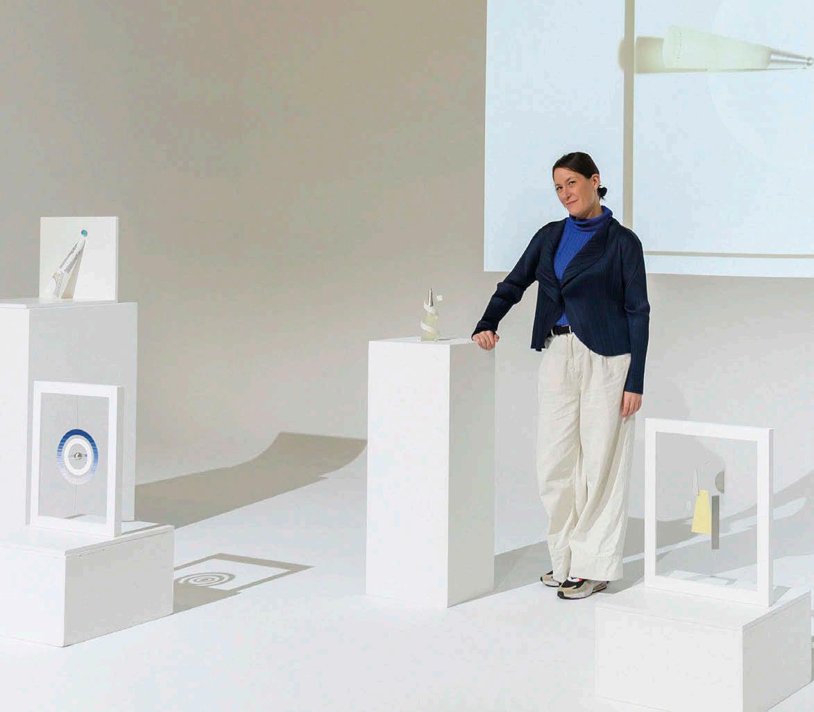 Elisa Valenzuela explica el concepto de su obra al público congregado.