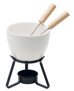 Keramični set za fondi za dva, dve kovinski vilici z lesenim ročajem, 240 ml, svečka ni priložena.