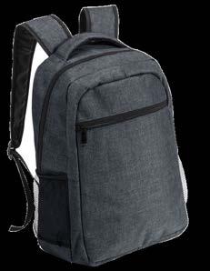 20 L nahrbtnik z oblazinjenim predalom za prenosni računalnik z nastavljivimi naramnicami. Prednji žep na zadrgo in skriti žep na zadnji strani. Vodoodbojen poliester.