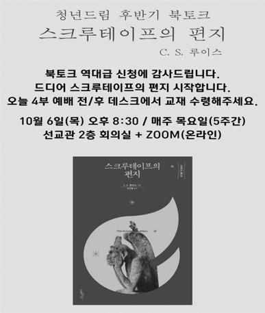 6일(목)요한공동체가을맞이특강(13일, 한성열교수)