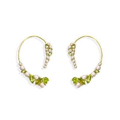 A magnificent ear cuff hand crafted in 14K Gold featuring a selection of exquisite Peridots and Pearls. Designed in collaboration with FuliGemstones. Delicate and lightweight the earrings can easily be adjusted to fit all sizes comfortably. They have been designed to fit comfortably around the ear with the flexible wire joining the top and bottom of the earring.