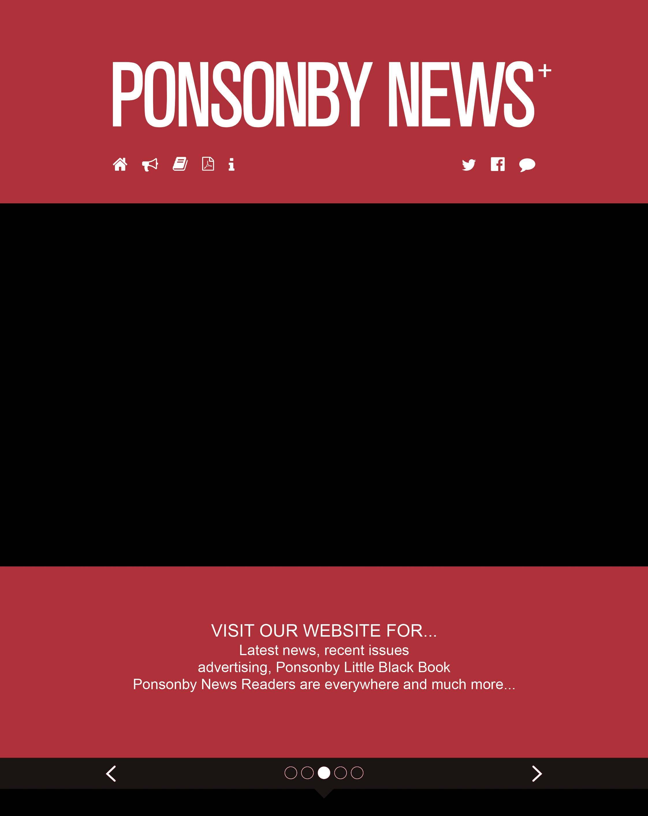any form or by any means - electronic, mechaal, photocopying, recording or otherwise - without the prior permission, in writing, of the copyright owner. Colour transparencies and manuscripts submitted are sent at the owner’s risk; neither the publisher nor its agents accept any responsibility for loss or damage. Although every effort has been made to ensure the accuracy of the information contained in this publication, the publisher can accept no liability for any inaccuracies that may occur. PONSONBY NEWS is published monthly, excluding January by: ALCHEMY MEDIA LIMITED, P.O. BOX 47-282 Ponsonby, Auckland 1144, T: 09 378 8553, www.ponsonbynews.co.nz PONSONBY NEWS is printed on paper sourced from sustainable, well managed forests and manufactured under the environmental management system ISO 14001. INSIDE THIS MONTH