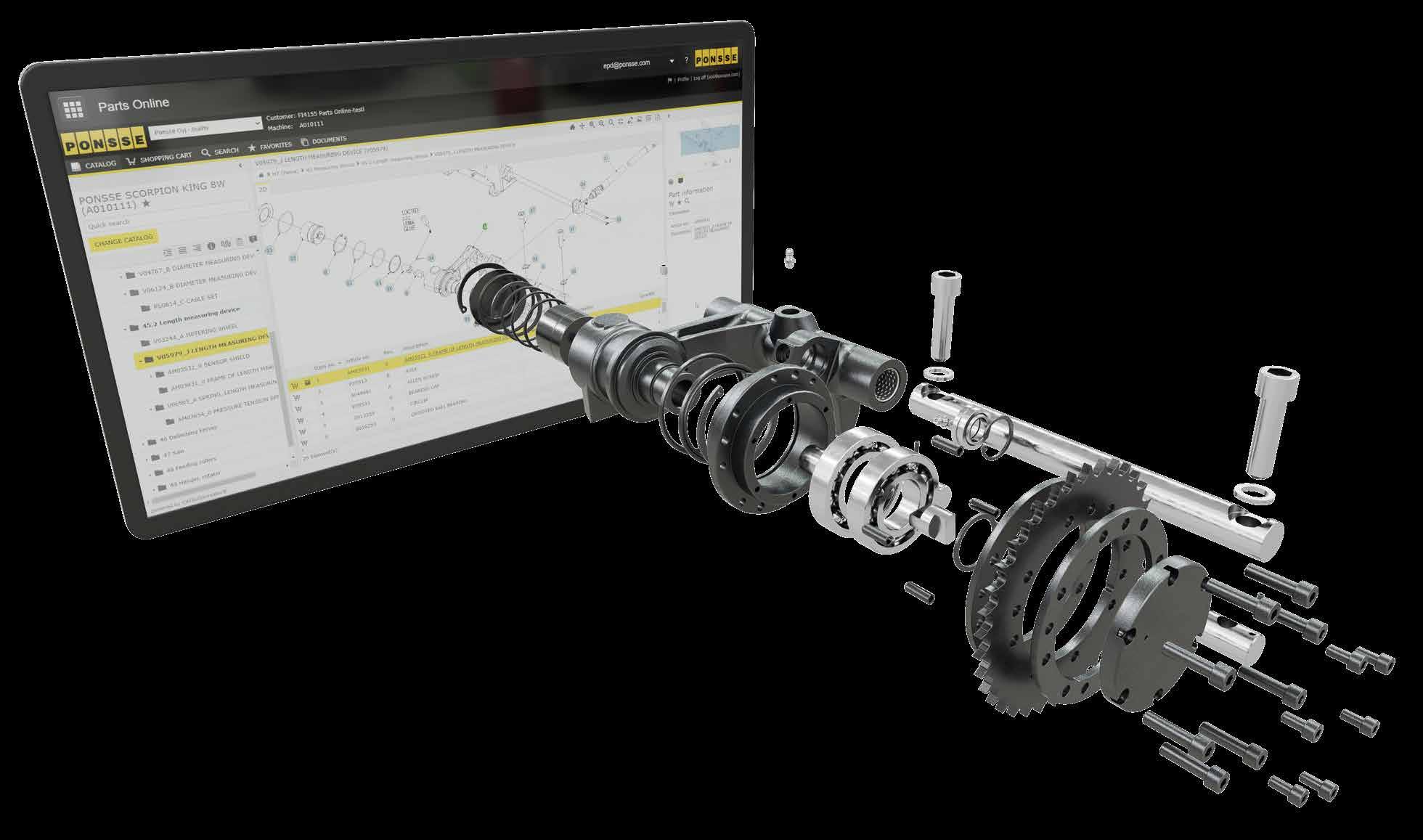 PONSSE Parts Online sisältää valtavan määrän tietoa koneestasi ja siihen sopivista varaosista. Mihin vuorokauden aikaan tahansa näet oikeat osat, hinnat ja reaaliaikaisen saatavuuden. Voit tilata ne haluamastasi PONSSE Huoltopalvelukeskuksesta haluamaasi paikkaan.