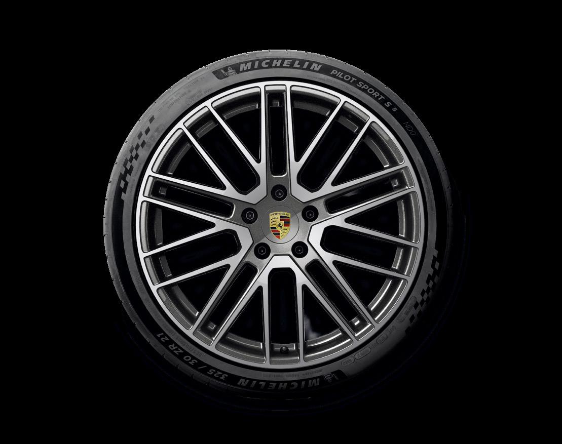 21-Zoll Cayenne Turbo Sommerkomplettradsatz Einteilige Leichtmetallräder im Cayenne Turbo Design in Titandunkel inklusive Glanzdrehbereichen.